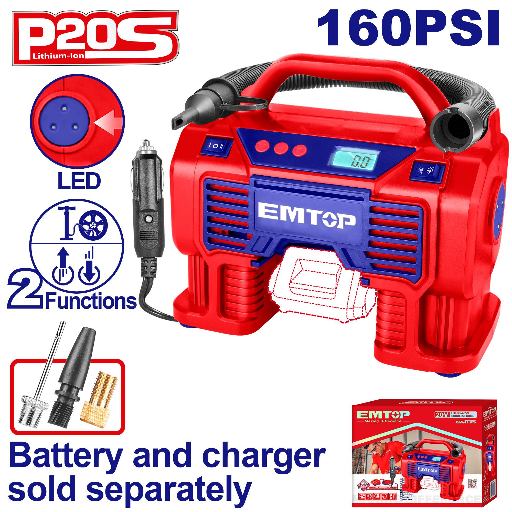 Wysokowydajny kompresor 20V ELAC2002 należy do systemu P20S EMTOP, to wszechstronny i niezawodny kompresor akumulatorowy, który sprosta nawet najbardziej wymagającym zadaniom.