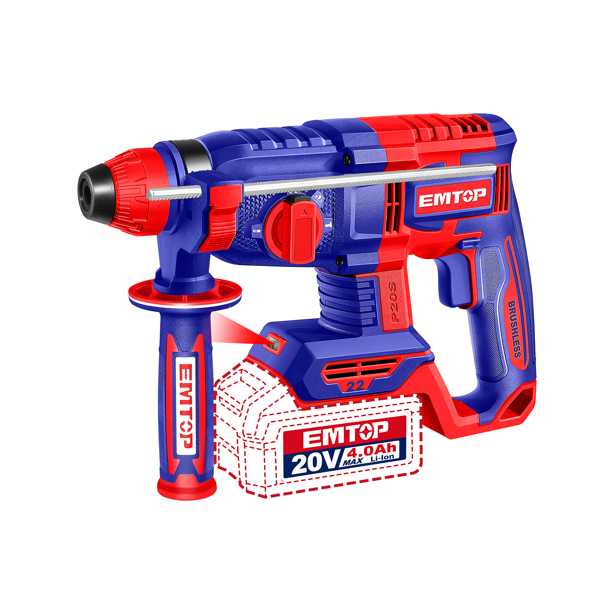 Model ELRH21228 EMTOP jest kompatybilny z systemem P20S EMTOP, co zapewnia wygodę użytkowania i możliwość wymiany akumulatorów w innych narzędziach z tej samej serii.