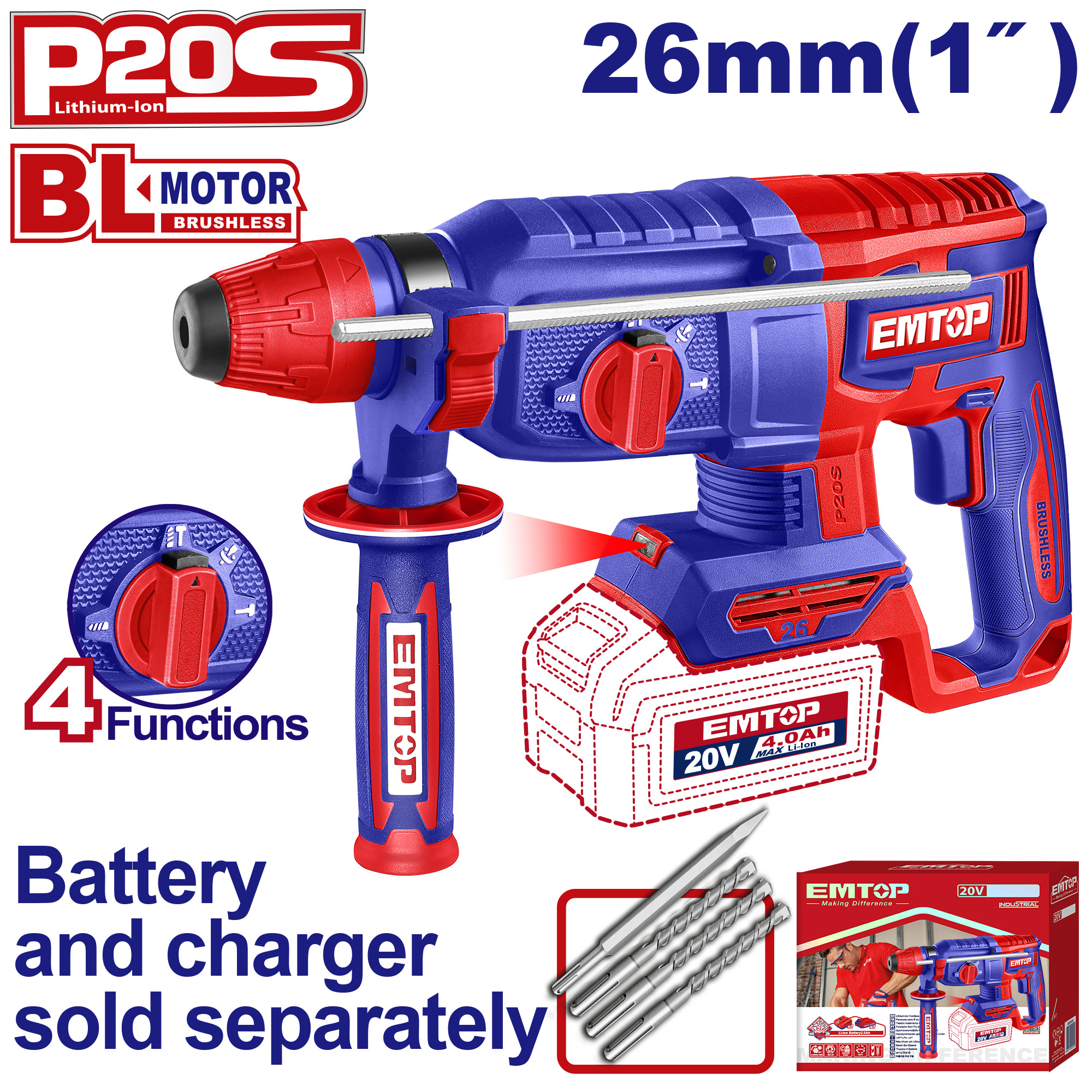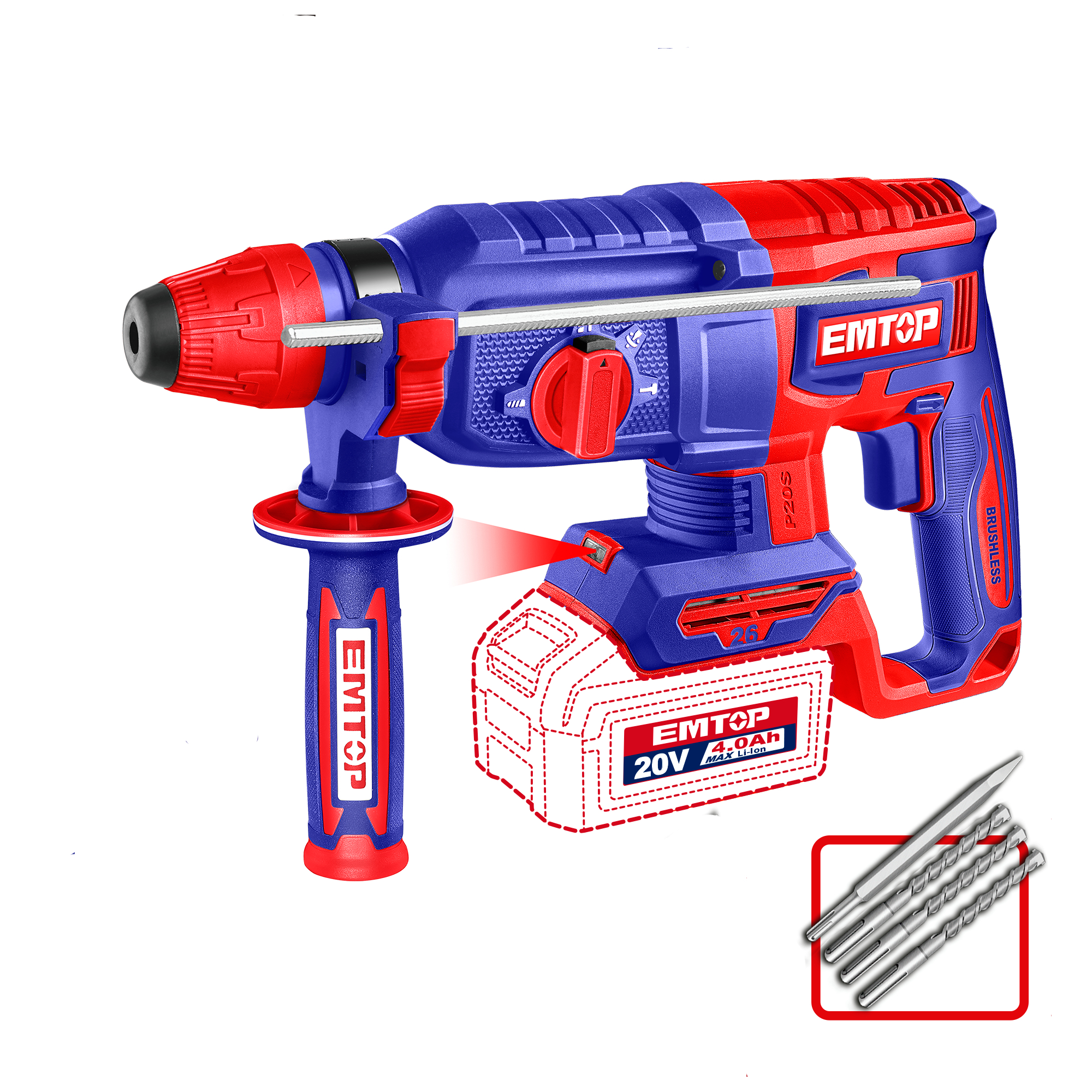 Model ELRH20268 EMTOP jest kompatybilny z systemem P20S EMTOP, co zapewnia wygodę użytkowania i możliwość wymiany akumulatorów w innych narzędziach z tej samej serii.