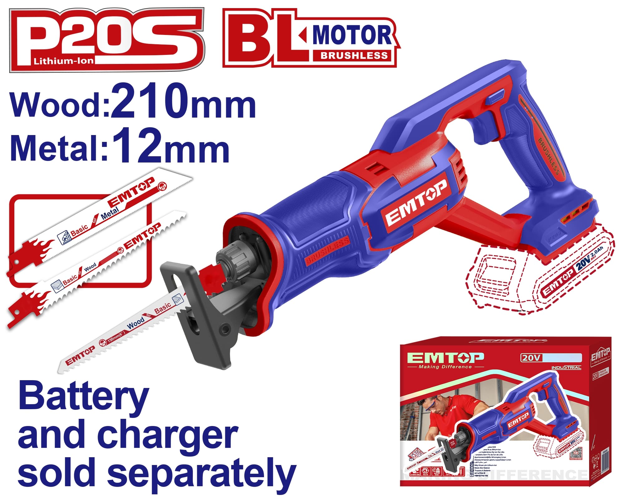 ELRS202108 EMTOP to wydajna i wszechstronna piła szablasta, idealna do cięcia drewna, metalu i innych materiałów budowlanych.