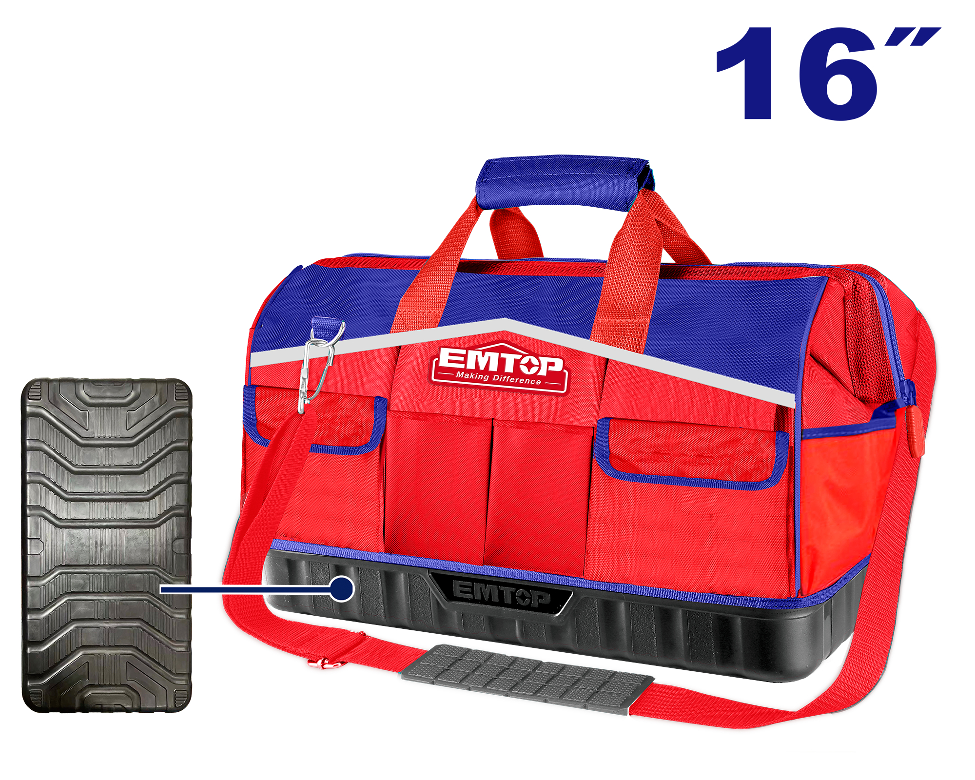 Torba narzędziowa wzmacniana 16" ETBG28164 to praktyczne i solidne rozwiązanie do przechowywania oraz transportu narzędzi. Wykonana z wytrzymałego poliesteru 1680D, charakteryzuje się wysoką odpornością na przetarcia i uszkodzenia, a jej maksymalne obciążenie wynosi 20 kg.