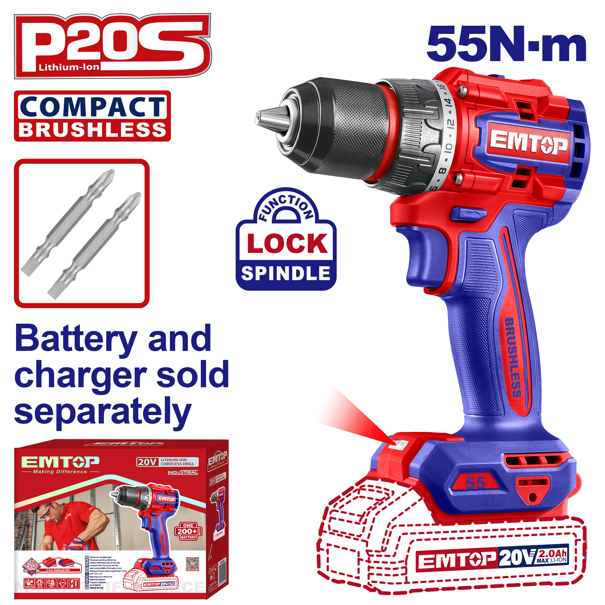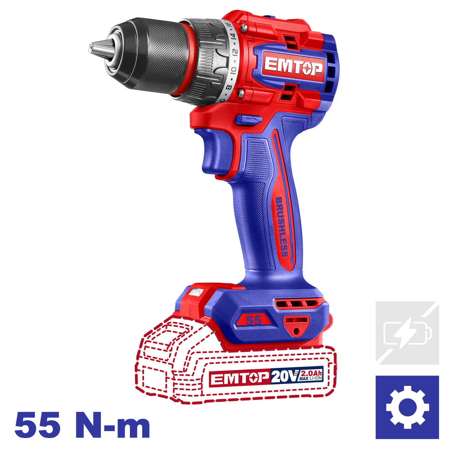 EMTOP które posłuży wiele lat. Akumulatorowa wiertarko-wkrętarka EMTOP ECDL205581 20V, to narzędzie wyposażone w bezszczotkowy silnik, zaprojektowany z myślą o szerokim zastosowaniu i intensywnej pracy.