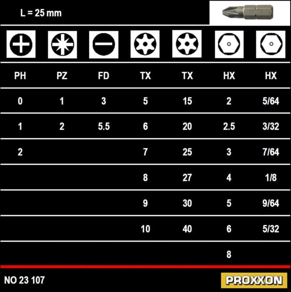 - Do kompletu 7 najczęściej używanych bitów (PH, PZ i do wkrętów z rowkiem).